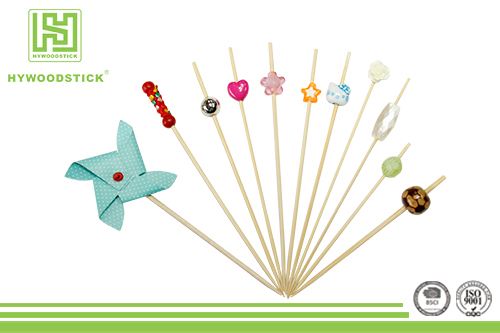 This product is a skewer decorated by different beads. The skewer is natural wood or bamboo materials, our bead string picks are all environmental friendly products.