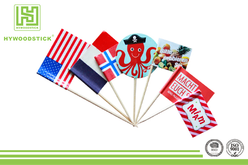 Our flag picks could be customized according to your requirements.We can produce on the basis of your different styles of design,such as country flags, art flags, fashion flags and cute flags etc. With the biodegradable wood and paper materials, you needn’t worry about pollution problems.
