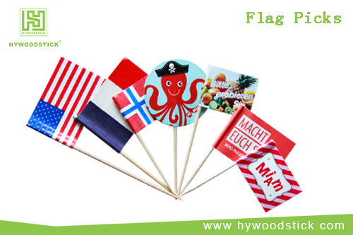Our flag picks could be customized according to your requirements.We can produce on the basis of your different styles of design,such as country flags, art flags, fashion flags and cute flags etc. With the biodegradable wood and paper materials, you needn’t worry about pollution problems.